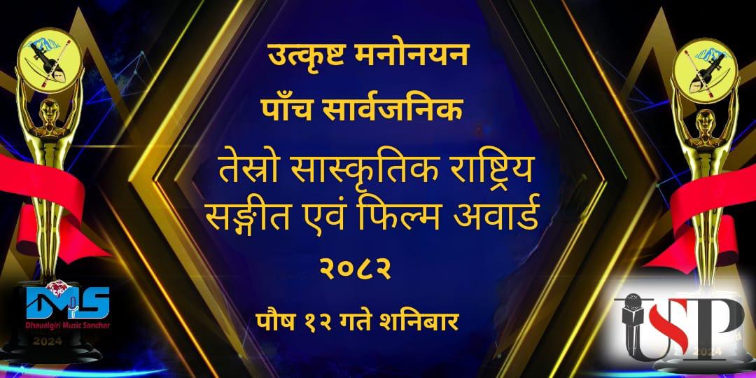 पौष १५ काठमाण्डौ। उपमा कला शाहित्य तथा सञ्चार प्रतिष्ठान, धौलागिरी म्युजिक सञ्चार प्रा लि तथा उपमा सञ्चार प्राली को संयुक्त आयोजना मा गरिएको तेस्रो सास्कृतिक सङ्गीत एवं फिल्म राष्ट्रिय अवार्ड २०८२ अर्थात (3rd Cultural Music & film National Award 2025) उत्कृष्ट मनोनयन पाँच २०८२ पौष १२ गते शनिबार अन्लाईन मार्फत सार्वजनिक गरिएको छ। करिब २०० कलाकार हरु समावेश भइ विभिन्न बिधा मार्फत २८ बिधामा १४० जना कलाकार हरु टप फाइभ मा पर्न सफल हुनु भएको छ। र बिगत दोस्रो सस्करण सम्म हामिले भब्य र सब्य सम्पन्न गरियो भने अहिले पनि अलि फरक किसिम ले राजधानी कै चलचित्र बिकास बोर्ड को सभा-हल मा तेस्रो सस्करण को अवार्ड बिजेता पुरस्कार बितरण कार्यक्रम काठमाण्डौमा सम्पन्न गरिने बारे कार्यक्रम का अध्यक्ष आशा गौतम / संयोजक राम्कृष्ण पाण्डे ले जानकारी गराउनु भएको छ।
