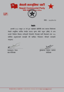 माघ १४,काठमाडौं । नेपाली कम्युनिस्ट पार्टीले केन्द्रीय सदस्य कृष्णा केसीलाई पार्टीबाट निष्कासन गरेको छ।