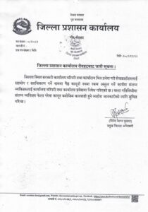 प्रमुख जिल्ला अधिकारी दिनेश सागर भुसालद्वारा जारी गरिएको एक सूचनामा, जिल्लास्थित सरकारी कार्यालयहरूको वरिपरि र कार्यालय भित्र प्रवेश गरी सेवाग्राहीहरूलाई ‘सहयोग र सहजीकरण गर्ने’ नाममा गैरकानूनी रूपमा रकम असुल गर्ने कार्य भइरहेको भन्दै यस्तो कदम चालिएको उल्लेख छ ।