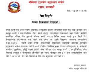 भवन निर्माणमा घुस : इन्जिनियर सहितका कर्मचारी अख्तियारको फन्दामा