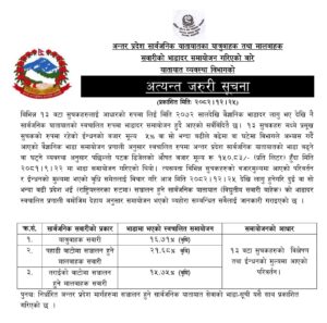 भाडा सूची तथा थप जानकारी विभागको वेबसाइटमा उपलब्ध हुनेछ । साथै, भाडा बढाबढ वा अन्य गुनासोका लागि नागरिकले हेलो सरकार ११११, ट्राफिक प्रहरी १०१/१०३ वा नजिकको यातायात कार्यालयमा सम्पर्क गर्न सक्नेछन् ।
