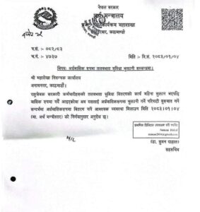 काठमाडौं । अर्थ मन्त्रालयले सरकारी कर्मचारीहरूको तलब–भत्ता भुक्तानी प्रणालीमा परिवर्तन गर्ने निर्णय गरेको छ । अहिलेसम्म मासिक रूपमा दिइँदै आएको तलब सुविधा आगामी दिनमा अर्धमासिक (महिनामा दुई पटक) रूपमा वितरण गरिने भएको हो ।
