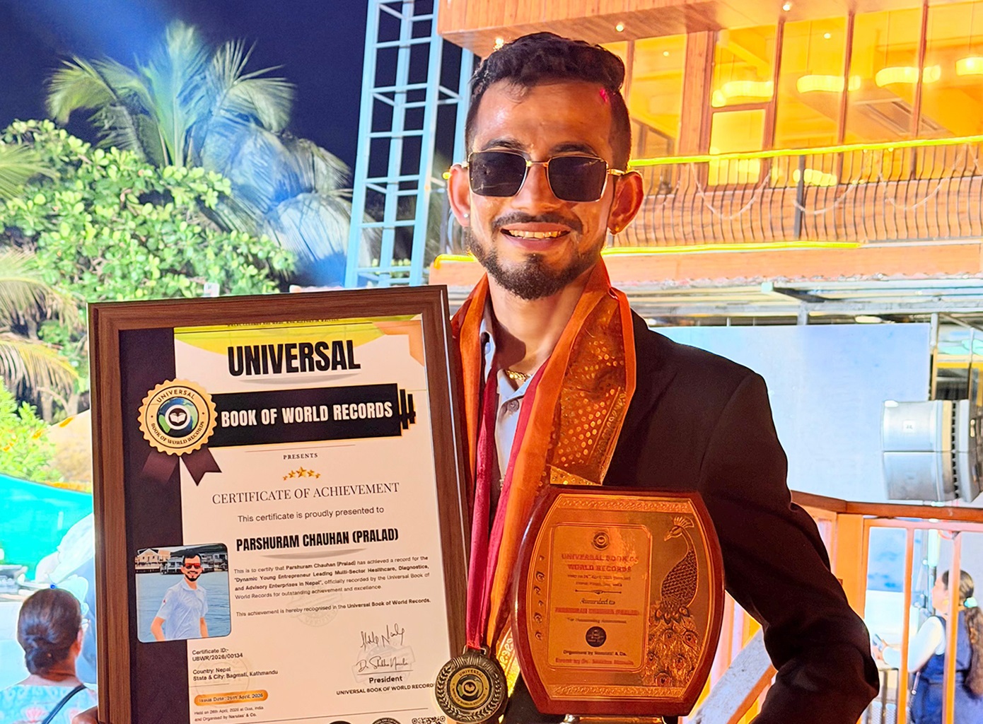 युवा उद्यमी प्रल्हाद चौहानलाई ‘युनिभर्सल बुक अफ वर्ल्ड रेकर्ड