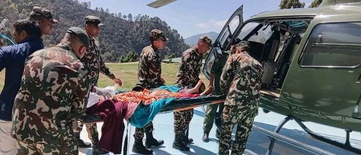 हेलिकप्टरमार्फत उद्वार गरिएकी महिला र नवजात शिशुको